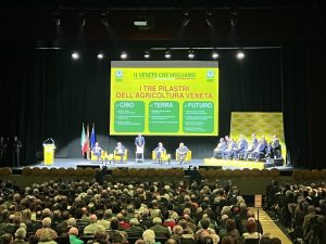 Gli agricoltori soci di Coldiretti Veneto sono arrivati da tutta la Regione per incontrare i candidati ai quali è stato presentato ufficialmente “Il Veneto che vogliamo”, documento programmatico redatto per la XII Legislatura con il quale l’organizzazione agricola si rivolge al prossimo Governatore del Veneto.Sul palco, accolti dal presidente di Coldiretti Veneto Carlo Salvan e dal direttore Marina Montedoro sono saliti i candidati Giovanni Manildo per il centrosinistra, Marco Rizzo di Democrazia Sovrana Popolare e Alberto Stefani per il centrodestra. A moderare il dibattito il giornalista e vice direttore del Tg5, Giuseppe De Filippi, che ha aperto il confronto con alcune domande di attualità. Sul palco anche i presidenti delle federazioni provinciali veneti, insieme ai rappresentanti di giovani, donne e senior di Coldiretti Veneto. In platea parlamentari, assessori e consiglieri regionali uscenti e candidati di ogni schieramento.
