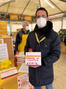 Il presidente provinciale Carlo Salvan presente al mercato per protestare con i produttori