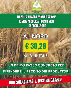 Coldiretti sottolinea, però, che i costi di produzione non possono essere però il prezzo: serve garantire un margine adeguato all’agricoltore, perché produrre sottocosto come sta avvenendo ora mette a rischio il futuro del Made in Italy. Sotto l’effetto delle manovre dei trafficanti di grano le quotazioni pagate agli agricoltori sono calate negli ultimi quattro anni tra il 35% e il 40%, mettendo a repentaglio le prossime semine e la tenuta economica delle aziende agricole, perché i ricavi non coprono più i costi di produzione.